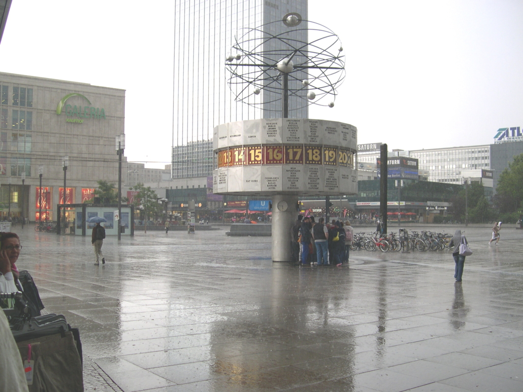 Alexander Platz, where trams are still roaming the streets, is the heart of former East Berlin. Here you’ll discover the Weltzeit Uhr, a world clock, showing the people of GDR the time in exotic locations. They were not allowed to leave the GDR, but that was a minor detail.
